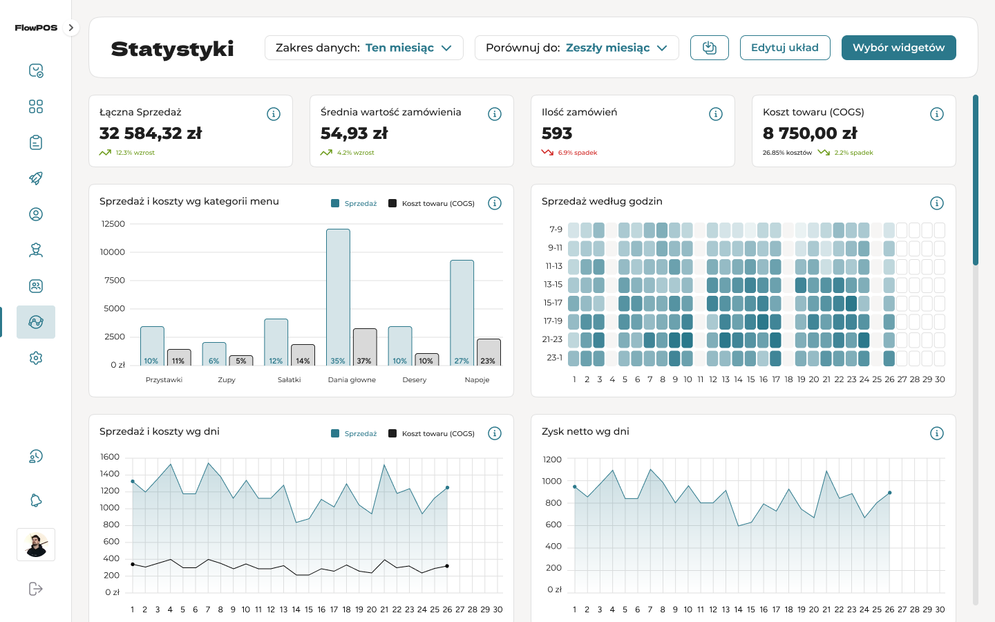 Zaawansowane statystyki sprzedaży, kontrola food cost, zarządzanie pracownikami i magazynem – wszystko w jednym miejscu.